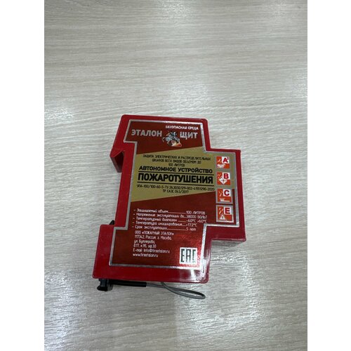 Установка пожаротушения автономная УПА «эталон ЩИТ» представляет собой миниатюрный аэрозольный самосрабатывающий огнетушащий модуль защищающий электрошкафное и электрощитовое оборудование ёмкостью до 100 литров, (0,1 куб. метра). Монтаж УПА «эталон ЩИТ» не требует специальных навыков и дополнительного оборудования. Устройство занимает размер 1 unit и крепиться на стандартную DIN-рейку. Установка устройства производится путём крепления на DIN-рейку при помощи встроенного фиксатора, по аналогии с установкой автоматического выключателя. Автоматическая активация модуля происходит при прямом воздействии пламени или повышении температуры выше 170 °C. При срабатывании УПА «эталон ЩИТ» происходит выделение огнетушащего аэрозоля, который заполняет весь объем защищаемого электрощита, в котором он установлен, мгновенно прекращает процесс пожара и дальнейшее его распространение. Обусловлено это тем, что выходящие газообразные частицы огнетушащего аэрозольного состава активно вмешиваются в химические реакции процесса горения, замещая кислород воздуха, а твердые мелкодисперсные частицы оседают на горящие поверхности, обволакивая их, эффективно препятствуют дальнейшему развитию пожара. Достоинства устройства:- Инновационный продукт - Тушит щиты всех типов и видов объемом до 100 литров. - Высокая скорость реакции на возникновение огня и мгновенное его подавление - Устанавливается на стандартную DIN рейку в электрощите - Исключает последствия от возможного возгорания - Не требует технического обслуживания - Экологически безопасен, не содержит токсичных веществ - Произведено в России, из российских компонентов - Имеет обязательный сертификат соответствия ТР еаэс 043/2017 «О требованиях к средствам обеспечения пожарной безопасности и пожаротушения»Область применения:- Частные дома и квартиры; - Гаражные помещения; - Магазины; - Общественные и административные здания; - Производственные и складские здания. Технические параметры: Время срабатывания, сек. до 5Защищаемый объем0,1 м3/100 лТемпература эксплуатации, °Cот – 60 до + 60Срок службы, лет 5Обслуживание не требуетсяЭкология безопасен Режим работы автономенОгнетушитель в электрощитОгнетушитель в электрический щит