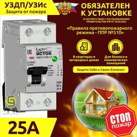 Комплектность: Устройство защиты от дугового пробоя 25А уздп ГК "ростех" НПО Исток (AFDD / узис) - 1 шт, Устройство средства контроля УЗДП-ск-001(форм фактор вилка), для проверки дальности работы уздп Исток в сети – 1 шт, инструкция.