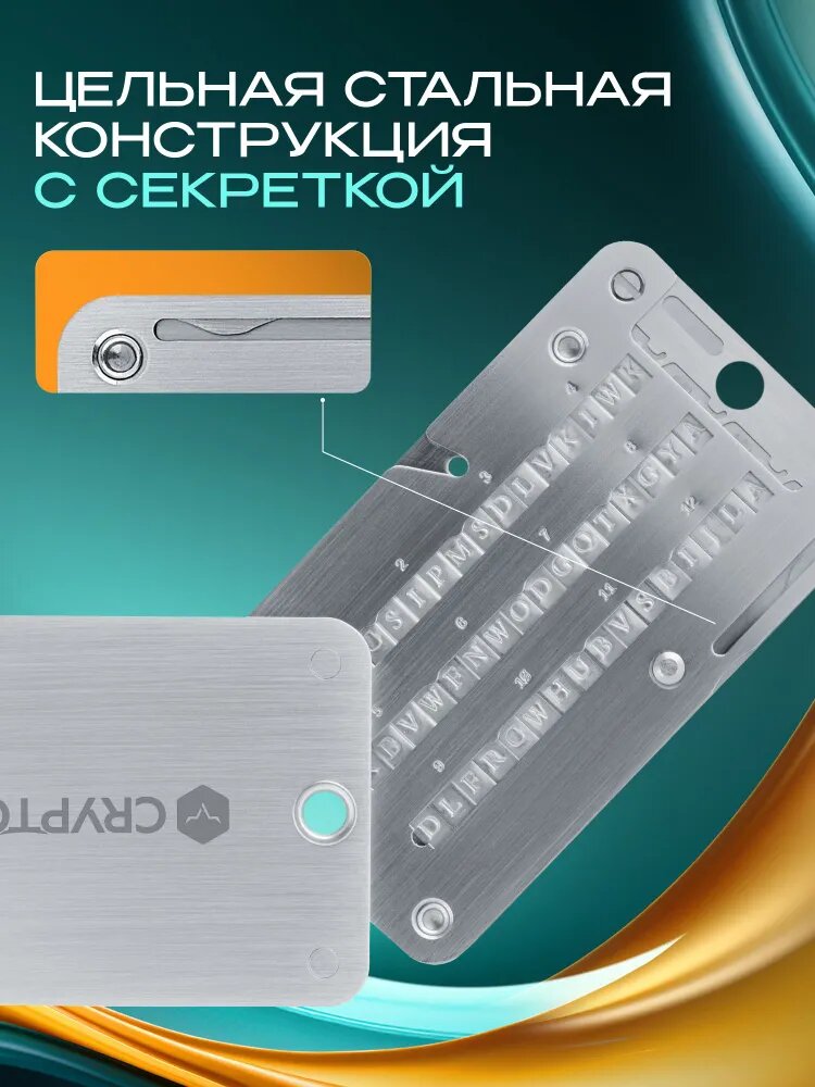 CRYPTORO OBEREG был создан с целью предоставления возможности офлайн-хранения приватных ключей, паролей и мнемонических фраз восстановления (SEED). Вы можете сохранять мнемоническую фразу или seed для своего крипто-кошелька. Принцип работы CRYPTORO OBEREG довольно прост: в заводской упаковке есть 333 выгравированных буквы, которые Вы можете использовать для сохранения пароля или кода. Затем пароль или код устанавливаются в устройство. С помощью CRYPTORO OBEREG Вы можете хранить до 96 символов конфиденциальной информации. Кроме того, устройство имеет неоспоримые преимущества перед бумажным носителем, такие как: 1. Устройство полностью состоит из 100% нержавеющей стали. 2. Устройство не сгорит и выдерживает температуру до 1200 С. 3. Важной особенностью устройства является его водонепроницаемость и долговечность. Корпус не подвержен воздействию морских солей даже на дне океана. 4. Устройство ударопрочное, от внешнего воздействия корпус не деформируется. 5. CRYPTORO OBEREG оснащен механизмом «секретного» открывания. Таким образом, механическое устройство CRYPTORO OBEREG обеспечивает максимальную защиту крипто-кошельков и может служить надежным сейфом для хранения криптоактивов и других паролей.