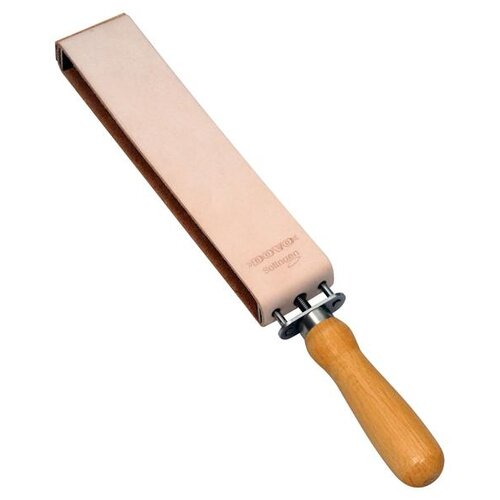 Ремень DOVO Solingen Spannschraubriemen для правки опасной бритвы с рукояткой Ключевые особенности: Изготовлен из кожи и конопляного волокна, с односторонним нанесением мастики Ремень для правки лезвия с ручкой подходит для полировки режущей кромки острых лезвий, как у опасных бритв, так и у кухонных, охотничьих и канцелярских ножей Обе стороны ремня сделаны из необработанной кожи растительного дубления, которая способна впитывать шлифовальную пасту Рукоять оснащена механизмом натяжения для ремня, изготовленный из нержавеющей стали и кожи растительного дубления Характеристики: Размеры: 33,5 см х 4,5 см х 2,8 см Материал: металлические части из нержавеющей стали, деревянная ручка, натуральная кожа Страна-производитель: Германия Вид упаковки: подарочная коробка