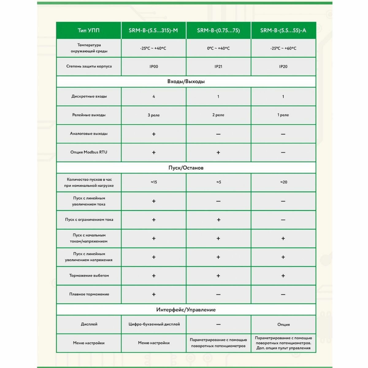 | Тип | софтстартер (устройство плавного пуска электродвигателя) |