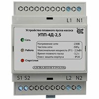 Устройство плавного пуска Extra Акваконтроль УПП-4Д-2,5, на DIN-рейку, предназначены для плавного включения и выключения бытовых скважинных и поверхностных насосов центробежного типа без встроенных электронных систем управления и плавного пуска. График плавного пуска УПП-4Д-2,5 оптимизирован для управления центробежными поверхностными и скважинными насосами, работающими в условиях правильно подобранной рабочей зоны.
