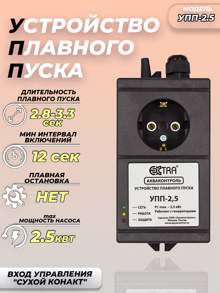 Купить Устройство плавного пуска для насоса EXTRA акваконтроль УПП-2,5 Универсал с доставкой по всей России. Устройство плавного пуска для насоса EXTRA акваконтроль УПП-2,5 Универсал: сравнение цен, характеристики, фото, актуальное наличие и цены.