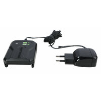 Зарядка оснащена специальным защитным чипом от перезаряда и перегрева. На корпусе устройство располагается индикатор зарядки аккумулятора. Питание зарядки от сети 230 вольт переменного тока 50-60 Гц. Максимальный ток заряда 2 А. Зарядное устройство заряжает 2 Ач батарею за 60 мин, 4Ач — 120 мин.