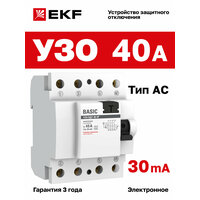 Устройство защитного отключения EKF Basic УЗО ВДТ-40 4P 40А/ 30мА (электронное): сравнение цен, характеристики, фото, актуальное наличие и цены.