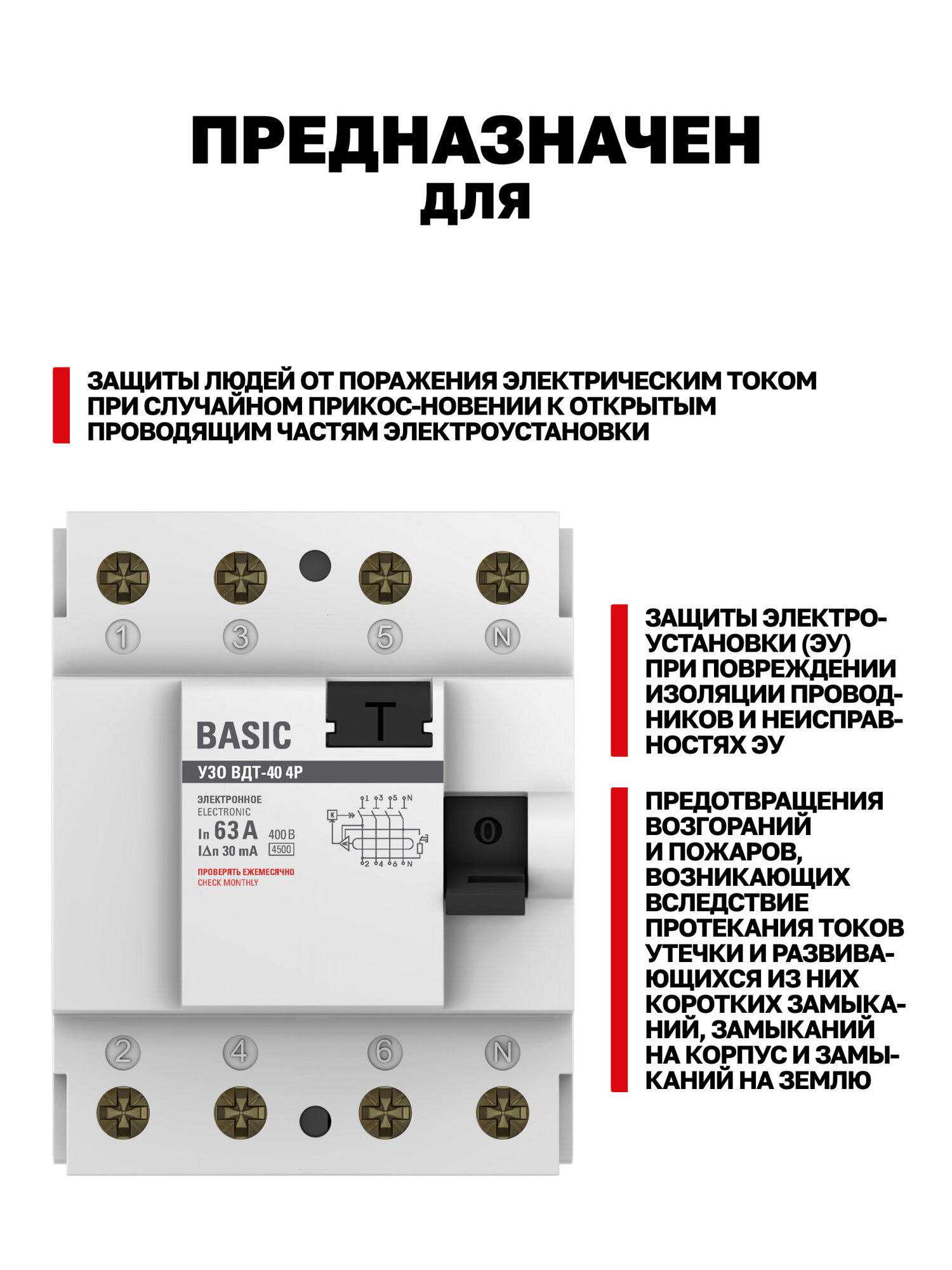 Устройство защитного отключения EKF Basic УЗО ВДТ-40 4P 63А/ 30мА (электронное): сравнение цен, характеристики, фото, актуальное наличие и цены.