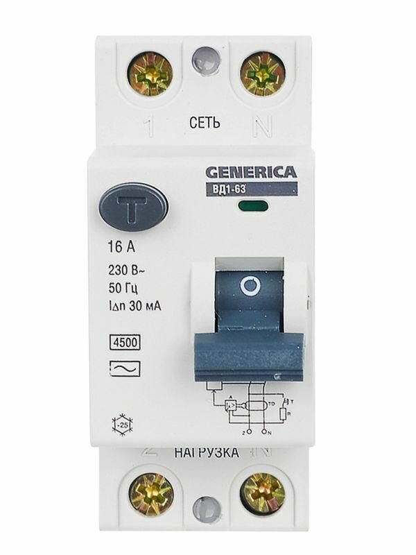 Выключатель дифференциального тока (УЗО) 2п 16А 30мА тип AC ВД1-63 GENERICA MDV15-2-016-030: сравнение цен, характеристики, фото, актуальное наличие и цены.