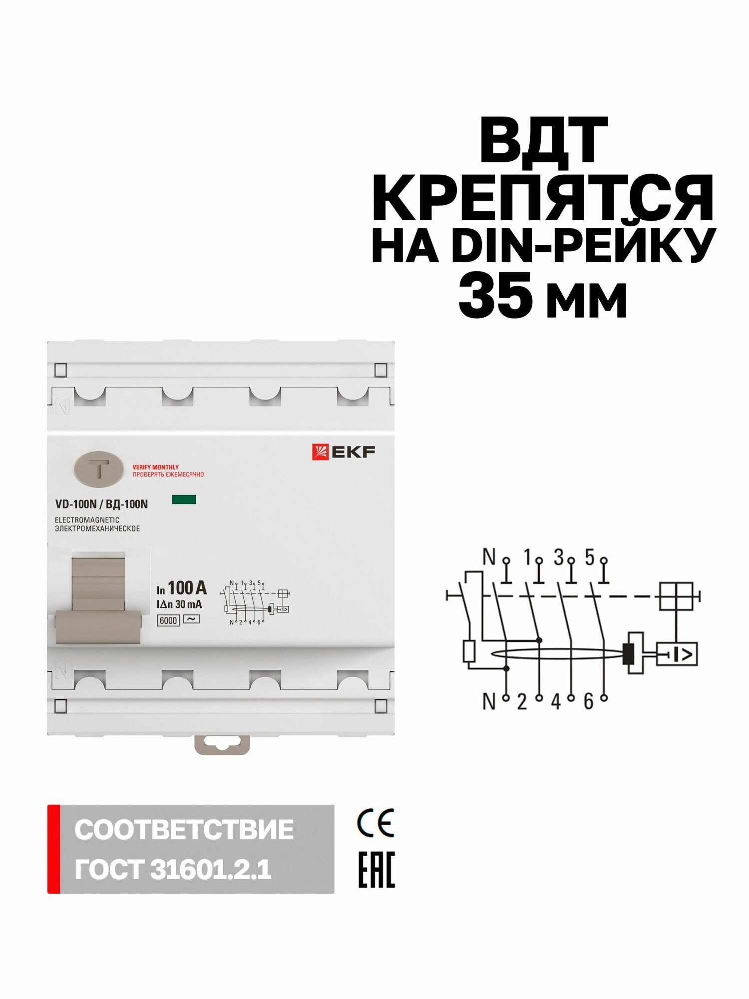 Соответствие международным и российским стандартам ГОСТ 31601.2.1 (IEC 61008–2–1), IEC 61008–1, а также сертификациям RoHS, EAC и CE подтверждают высокое качество и надежность выключателя дифференциального тока EKF PROXIMA ВД-100N, делая его идеальным выбором для обеспечения безопасности ваших электроустановок.