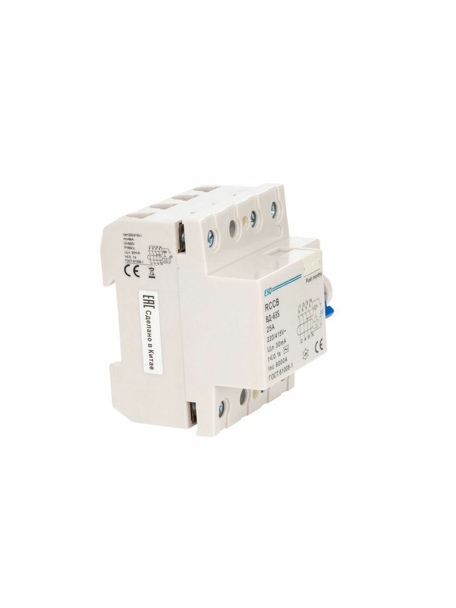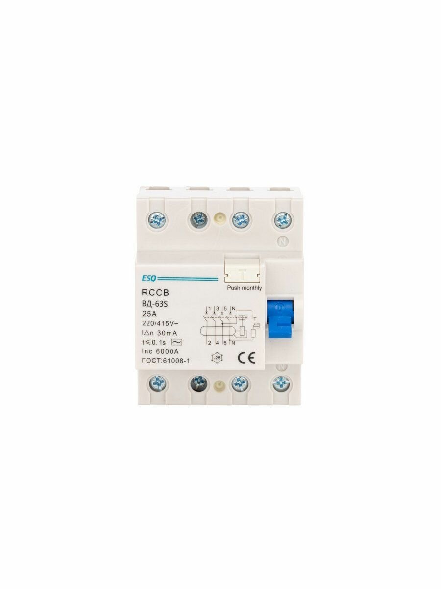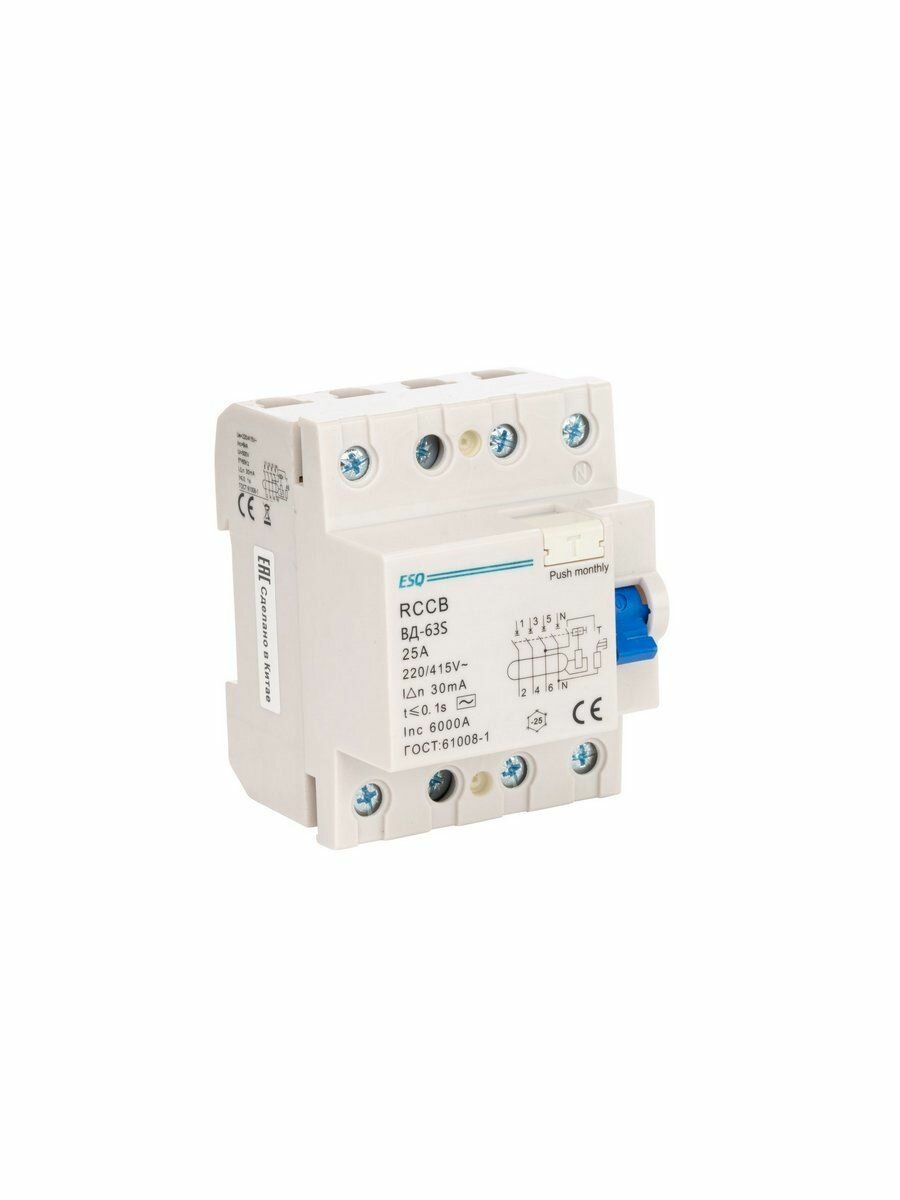 Устройство защитного отключения ВД-63S 4P 30G 0025 4 полюса, 25А/30мА/6кА (эл-мех, тип АC) ESQ: сравнение цен, характеристики, фото, актуальное наличие и цены.