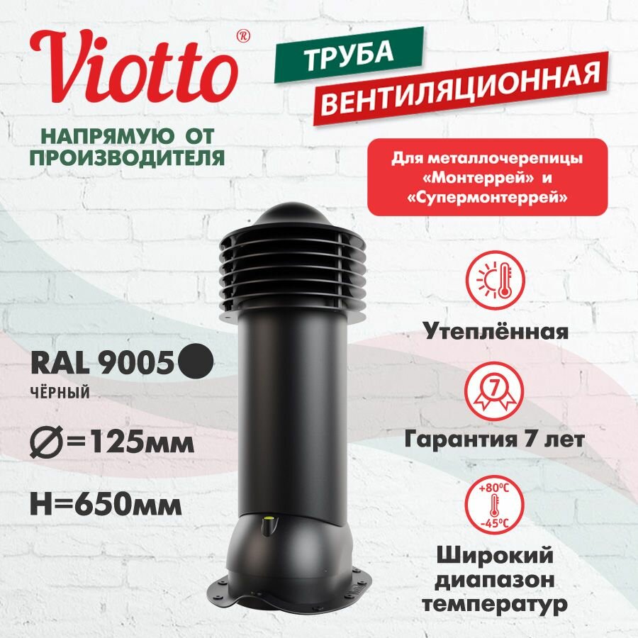 Купить Труба вентиляционная Viotto для металлочерепицы d-125мм утепленная чёрный (RAL 9005) с доставкой по всей России.