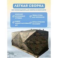 Утепленная палатка MIR 2023МС камуфляж для охоты и рыбалки – трехслойная палатка размером 400*200*170 см, предназначенная для активного отдыха. Она имеет отверстия для дымовой трубы и клапаны для автономного отопителя. Материал Оксфорд 210D PU обеспечивает водоотталкивающие свойства, а утеплитель из термофайбера 110Г сохраняет тепло. Каркас из стеклопластика гарантирует прочность и легкость сборки. Вентиляционные отверстия и штормовые оттяжки поддерживают комфортный микроклимат. Также хорошо подходит для мобильной бани.