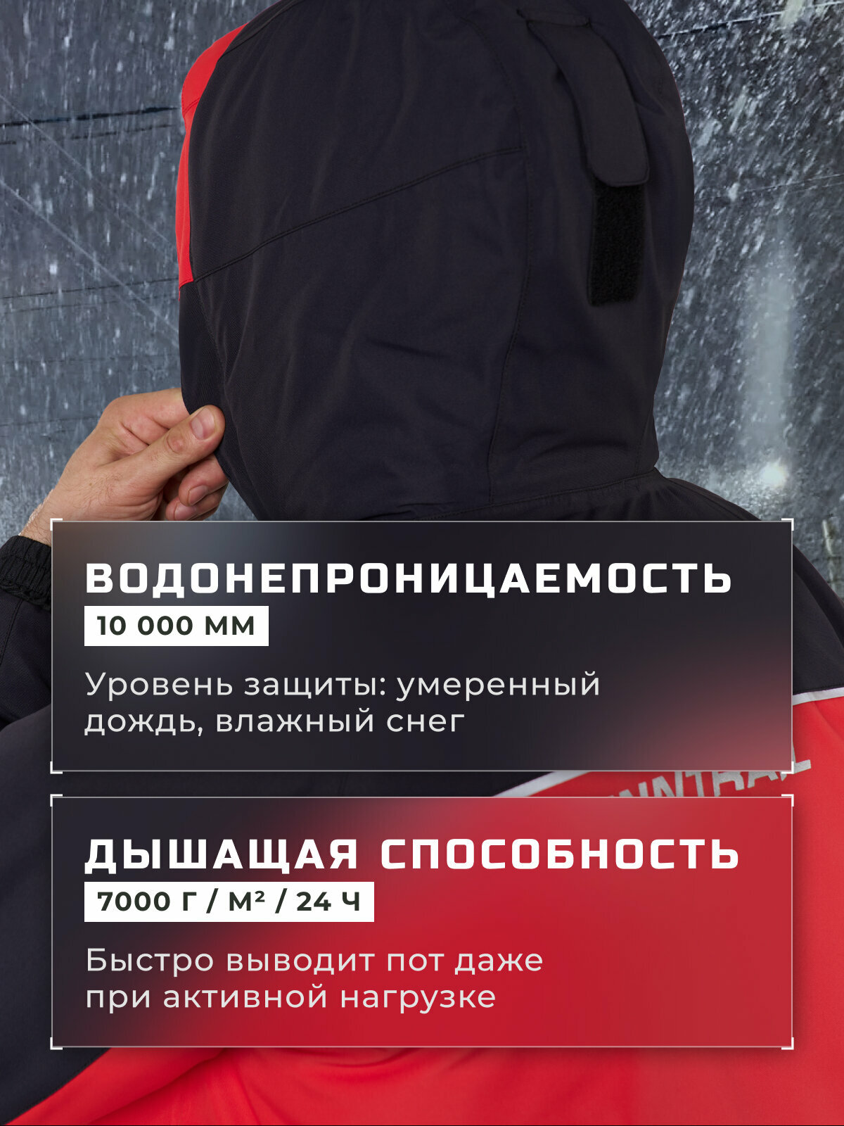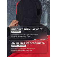 | Особенности | анатомический крой контактных зон, влагонепроницаемые молнии, с воротником, с капюшоном, с карманами, светоотражающие элементы, усиление контактных зон |