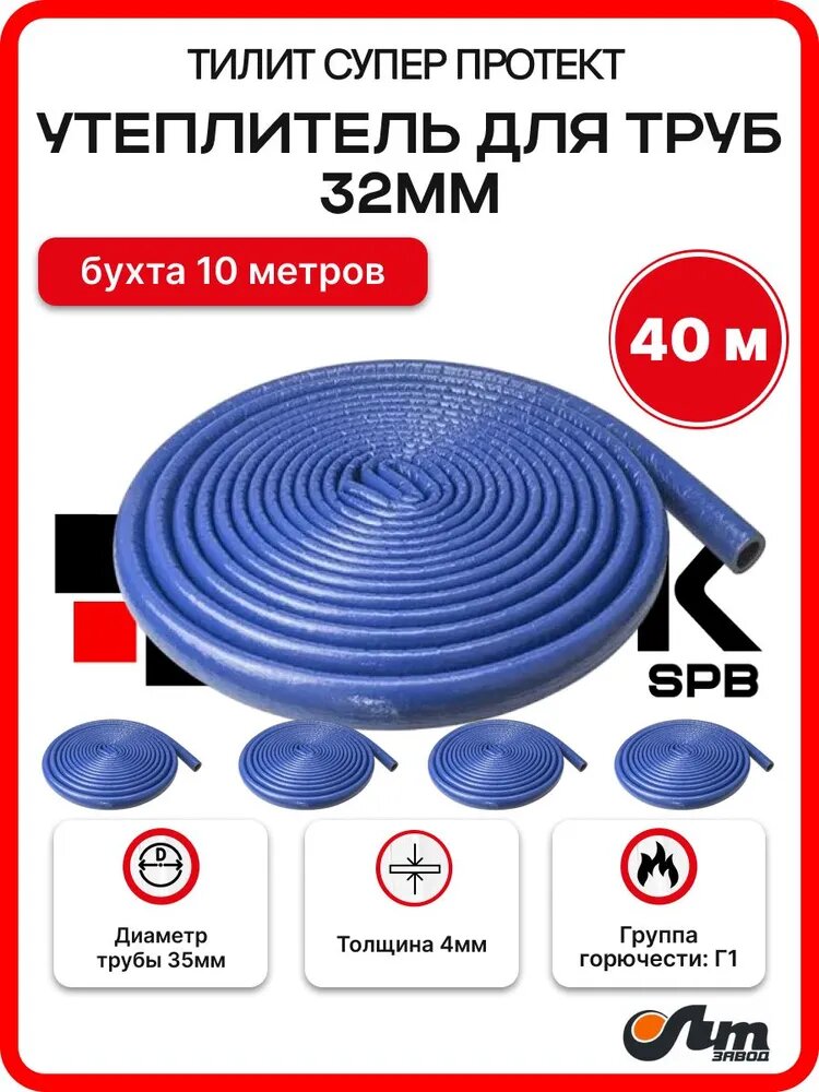 Утеплитель для труб 32 мм 40м 35/4мм, хвс синий Тилит Супер Протект — 4 бухты по 10 м: сравнение цен, характеристики, фото, актуальное наличие и цены.