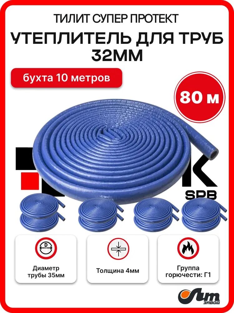 Утеплитель для труб 32 мм 80м 35/4мм, хвс синий Тилит Супер Протект — 8 бухт по 10 м: сравнение цен, характеристики, фото, актуальное наличие и цены.