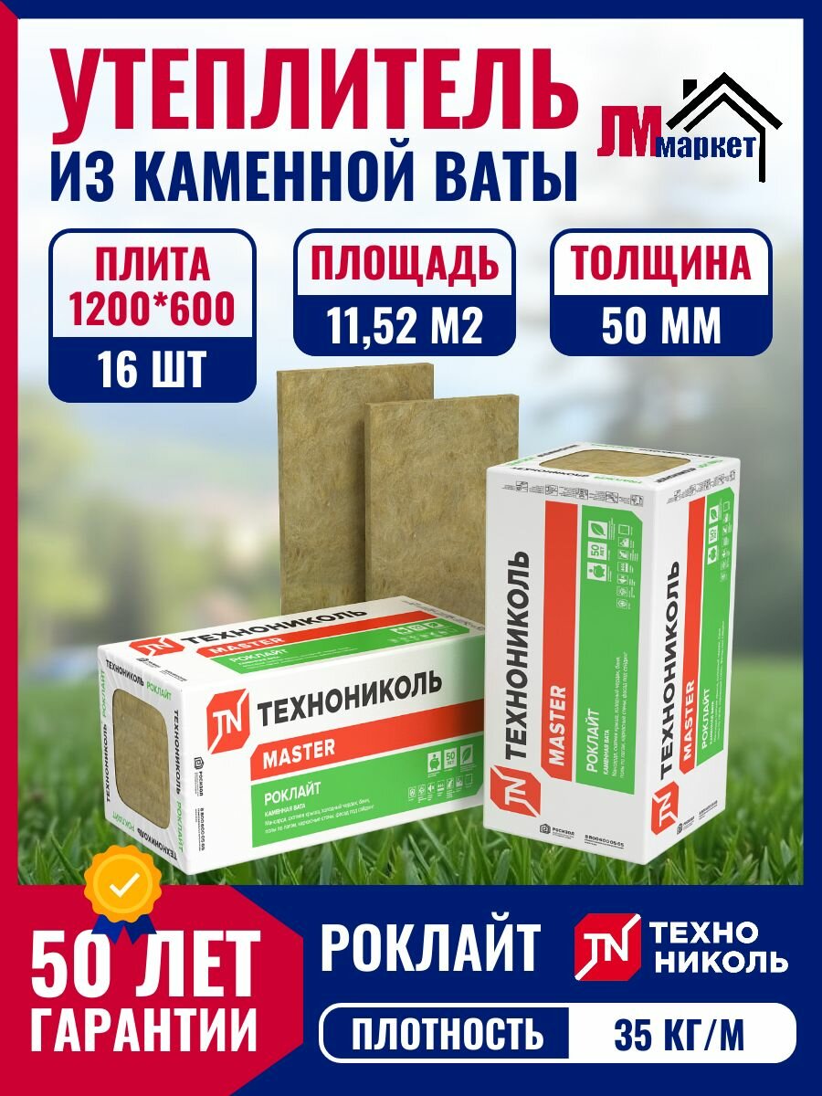 Утеплитель Технониколь РОКЛАЙТ, каменная вата, 50 мм, 1200 x 600 мм: сравнение цен, характеристики, фото, актуальное наличие и цены.