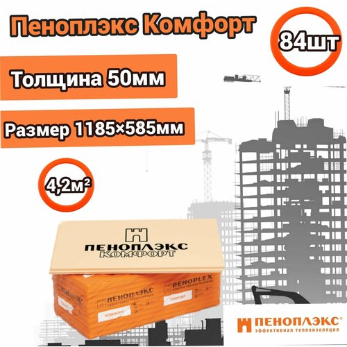 Купить Утеплитель Пеноплекс 50 мм Комфорт 84 плиты 58,8м2 из пенополистирола для стен, крыши, пола с доставкой по всей России.