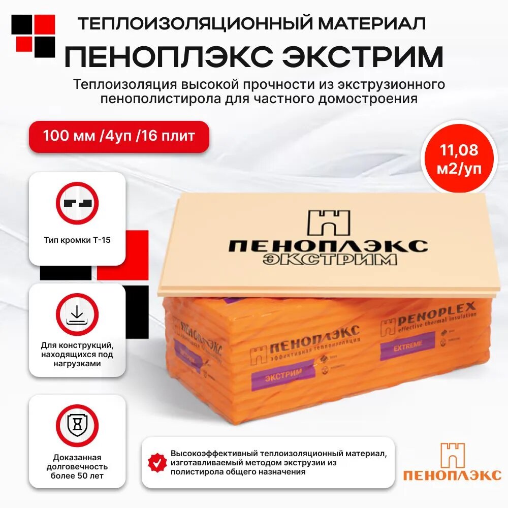Утеплитель Пеноплекс Экстрим 100 мм (4 уп /11,08м2/ 16 плит) из пенополистирола для фундамента, пола, оснований: сравнение цен, характеристики, фото, актуальное наличие и цены.