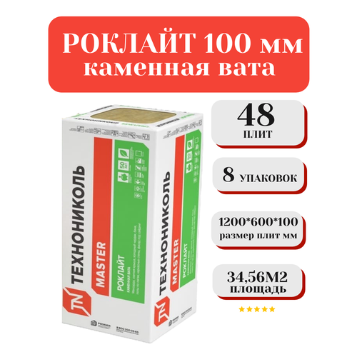 Продукт поставляется в виде 8 упаковок по 48 плит толщиной 100 мм каждая, что обеспечивает общую площадь в упаковке 34,56 м².
