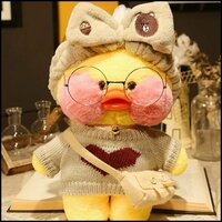 Мягкие игрушки уточки лалафанфан станут самыми обожаемыми плюшевыми друзьями для Вашего ребенка! В наборе с утенком идет стильная кофточка, очки, колокольчик на шее, большая повязка - бант, модные очки модели - ленноны, сумочка! К уточке можно подобрать одежду на Ваш вкус, составляя для нее интересный лук. Развивающая игрушка кукла с аксессуарами благотворно влияет на мелкую моторику и воображение: утенка можно переодевать и придумывать с ним веселые сюжетно-ролевые игры. Детская игрушка Уточка станет отличным подарком на любой праздник: день рождения год для мальчика и для девочки. Так же уточка lalafanfan прекрасно подойдет как подарок своей любимой на день рождения, жене , дочери, ведь она радует не только детей, но и взрослых!