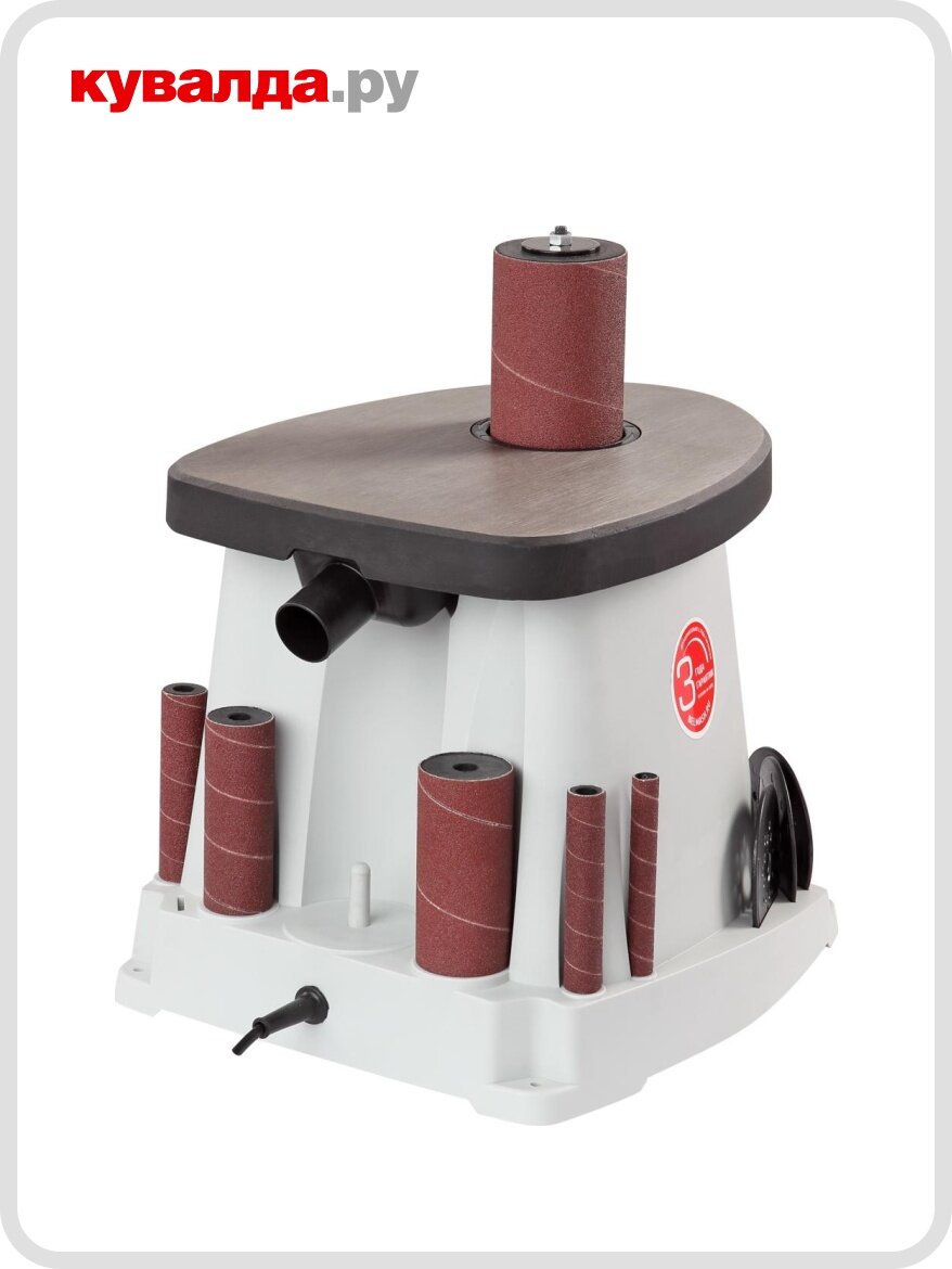 Станок оптимален для работы с кромками, торцами и краями заготовок с вогнутым профилем. В зависимости от кривизны обрабатываемой поверхности подбирают диаметр абразивной втулки (13, 19, 26, 38, 51, 76 мм). Высокая эффективность при использовании оснастки с такой рабочей поверхностью достигается за счет осцилляции – вертикального перемещения вала. Это увеличивает линейную скорость абразива и предотвращает возникновение продольных царапин из-за дефектов оснастки.