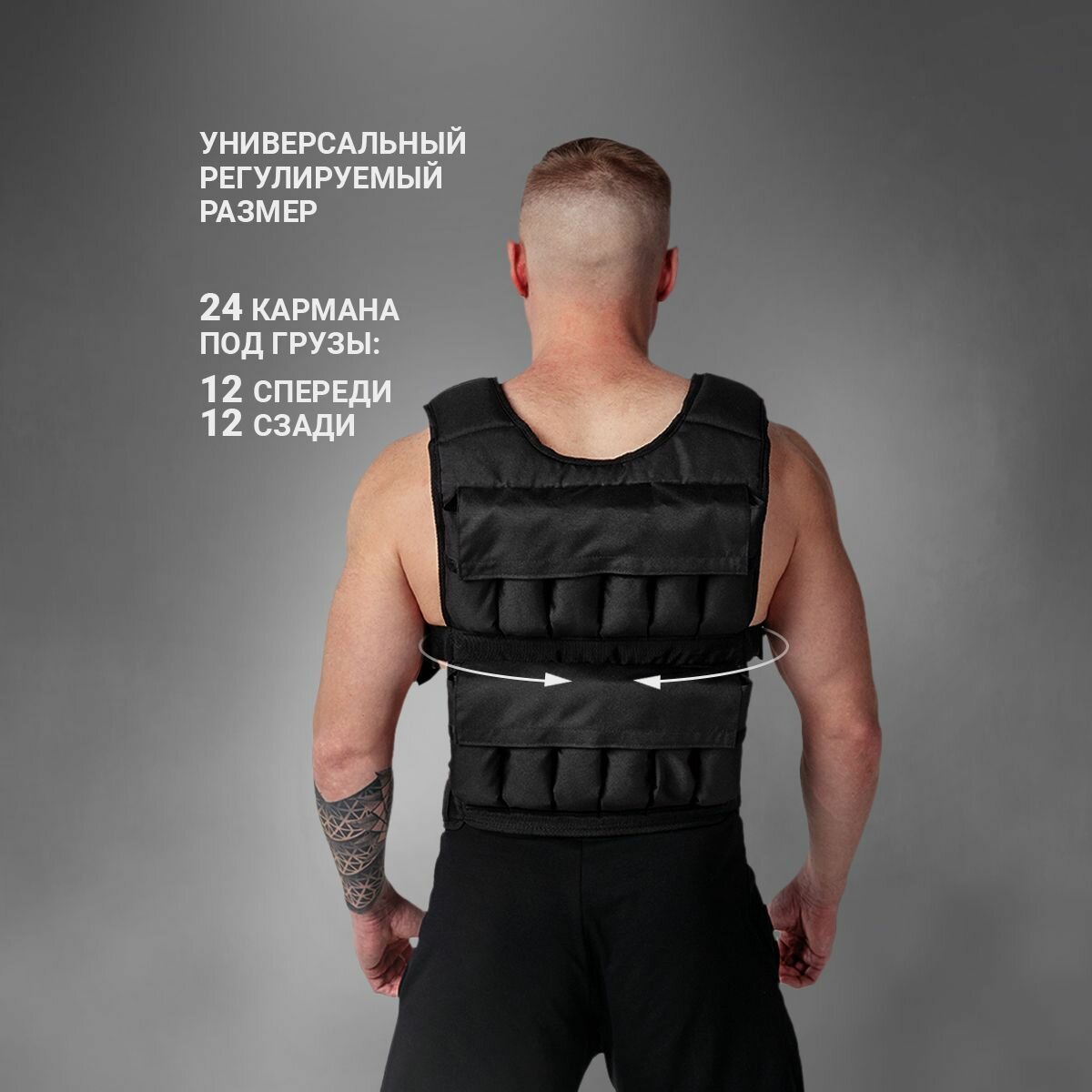 Жилет-утяжелитель SPR (с дробью 12 кг) - спортивное снаряжение, создающее дополнительную нагрузку посредством отягощения. Вес собственного тела уже мал для эффективной тренировки, но при этом вам важна свобода движений - утяжелитель для спорта с регулируемой нагрузкой станет отличным выбором. Надевается жилет сверху, через голову и фиксируется при помощи строп, которые охватывают его кольцом. Такое крепление гарантированно убережет от спадания жилета и ослабления фиксации во время тренировки. При этом жилет не сдавливает грудную клетку, а внутренняя мягкая подкладка добавляет комфортности. Жилет утяжелитель подойдет как для силовых упражнений, так и для тренировок направленных на похудение и прорисовку рельефа. Жилет-утяжелитель SPR представляет собой конструкцию из самого жилета с 12-тью кармашками. Кармашки надежно закрываются клапаном на липучке, что не дает грузам выпасть. В кармашки можно вставить необходимое количество грузов. Каждый груз выполнен из материала OXFORD и наполнен оцинкованным наполнителем и весом от 500 грамм. Жилет утяжелитель мужской изгтовлен из износостойкой ткани оксфорд. Жилет утяжелительный оснащен надежными ремнями на липучках, благодаря чему, размер жилета универсален и подойдет на любую фигуру. Жилет утяжелитель Спрутс пригодится при занятиях баскетболом, легкой атлетикой, гандболом, хоккеем.