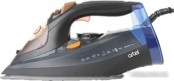 Серия - ART-SI-958. Материал корпуса - пластик. пластик. Потребляемая мощность - 2600. Тип управления - механический. Комплектация - воронка для залива воды. Индикация - включения, готовности к работе, уровня воды. Количество температурных режимов - 3. Интенсивность подачи пара до - 30. Максимальное давление - 2600. Время нагрева - до 30 сек. Регулировка температуры - 1-240 *С. Функции - автоматическая регулировка силы пара, автоматический контроль оптимальной температуры, противокапельная система, отпаривания. Распылитель воды. Долив воды в процессе глажки. Стержень от накипи. Турборежим подачи пара