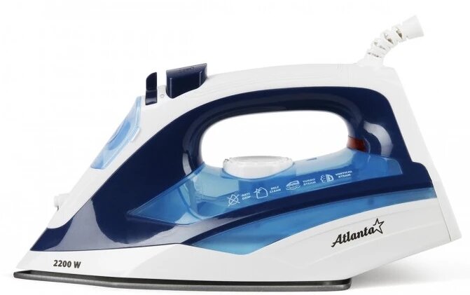 Утюг Atlanta ATH-5546, синий, 2200 Вт, антипригарное покрытие, паровой удар 75 г/мин, объем резервуара 270 мл: сравнение цен, характеристики, фото, актуальное наличие и цены.