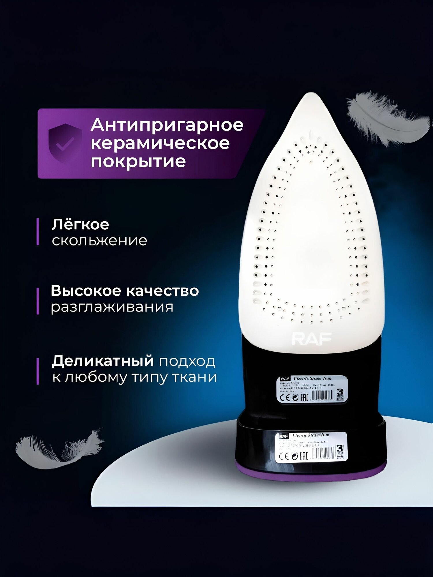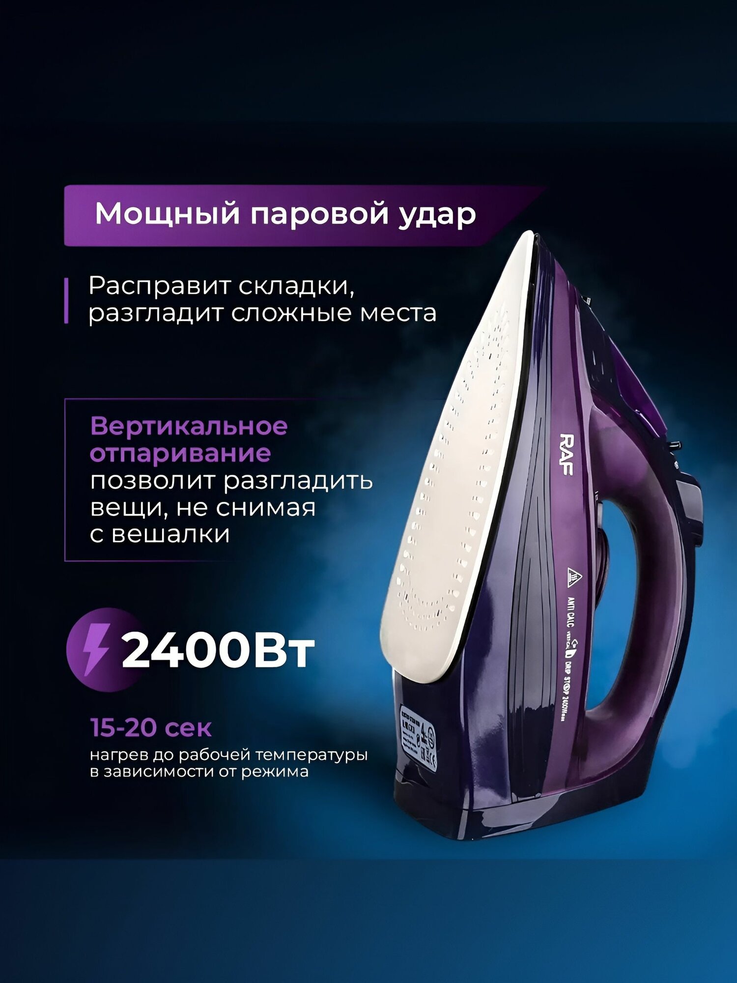 Купить Утюг для одежды RAF, с отпаривателем и керамической подошвой, беспроводной, 2400Вт, фиолетовый с доставкой по всей России. Утюг для одежды RAF, с отпаривателем и керамической подошвой, беспроводной, 2400Вт, фиолетовый: сравнение цен, характеристики, фото, актуальное наличие и цены.