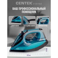 Купить Утюг CENTEK CT-2317 Blue: 2800Вт, керамическая подошва, паровой удар, защита от накипи, автовыключение с доставкой по всей России.