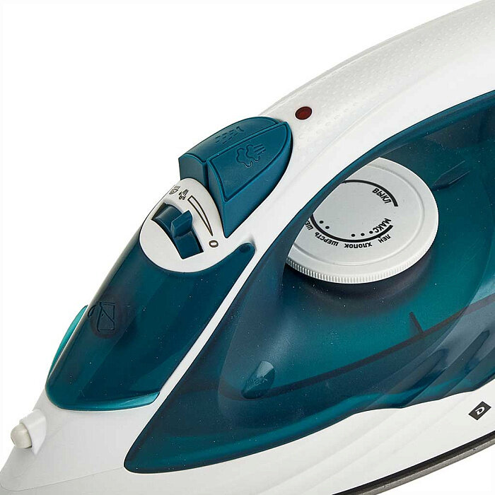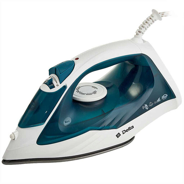 Купить Утюг Delta DL-153 белый с бирюзовым, 2200 Вт, антипригарное покрытие подошвы с доставкой по всей России.