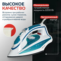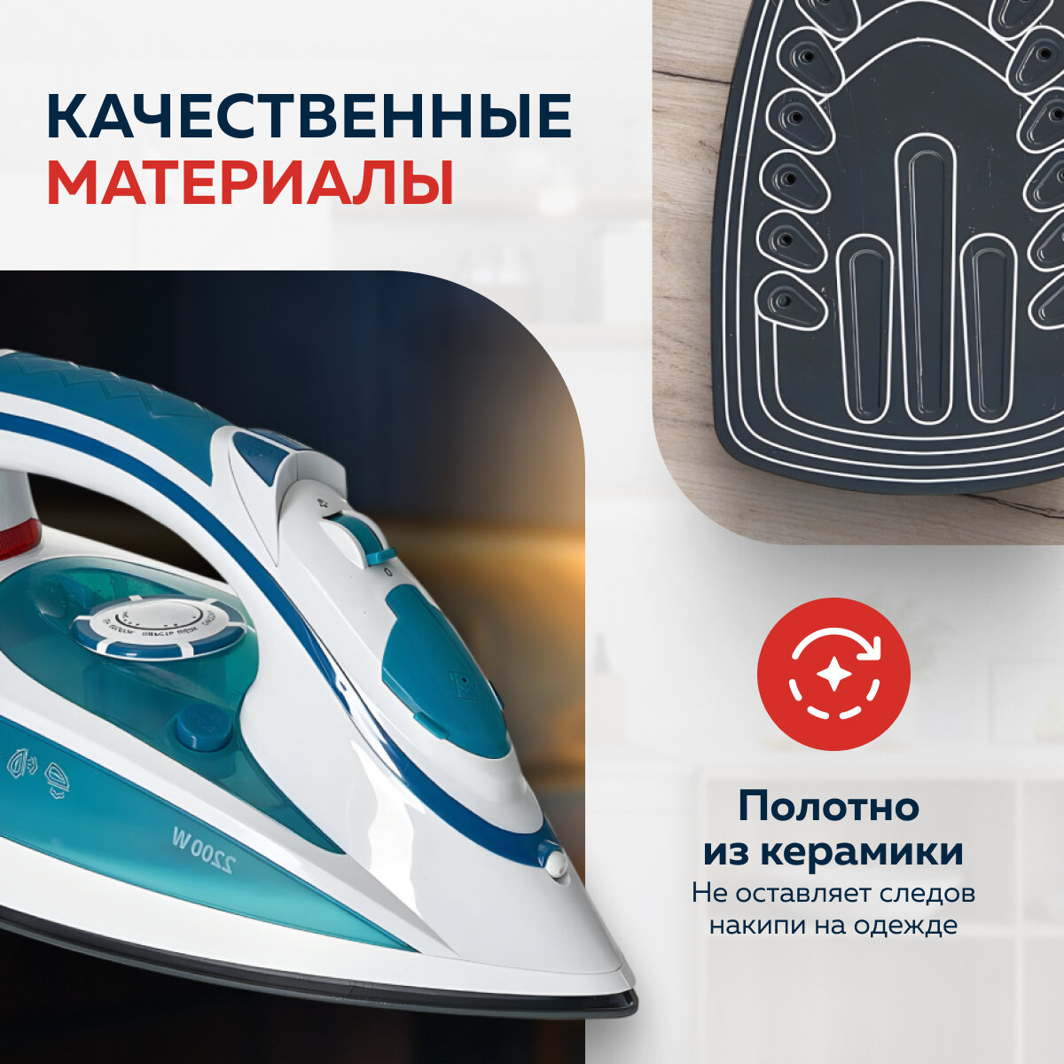 Купить Утюг DELTA LUX DL-352 белый с бирюзовым: 2200 Вт, керамическое покрытие, антинакипь (10) с доставкой по всей России.