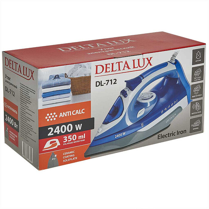 Утюг Delta Lux DL-712 электрический, защита от перегрева, 2400 Вт, синий: сравнение цен, характеристики, фото, актуальное наличие и цены.