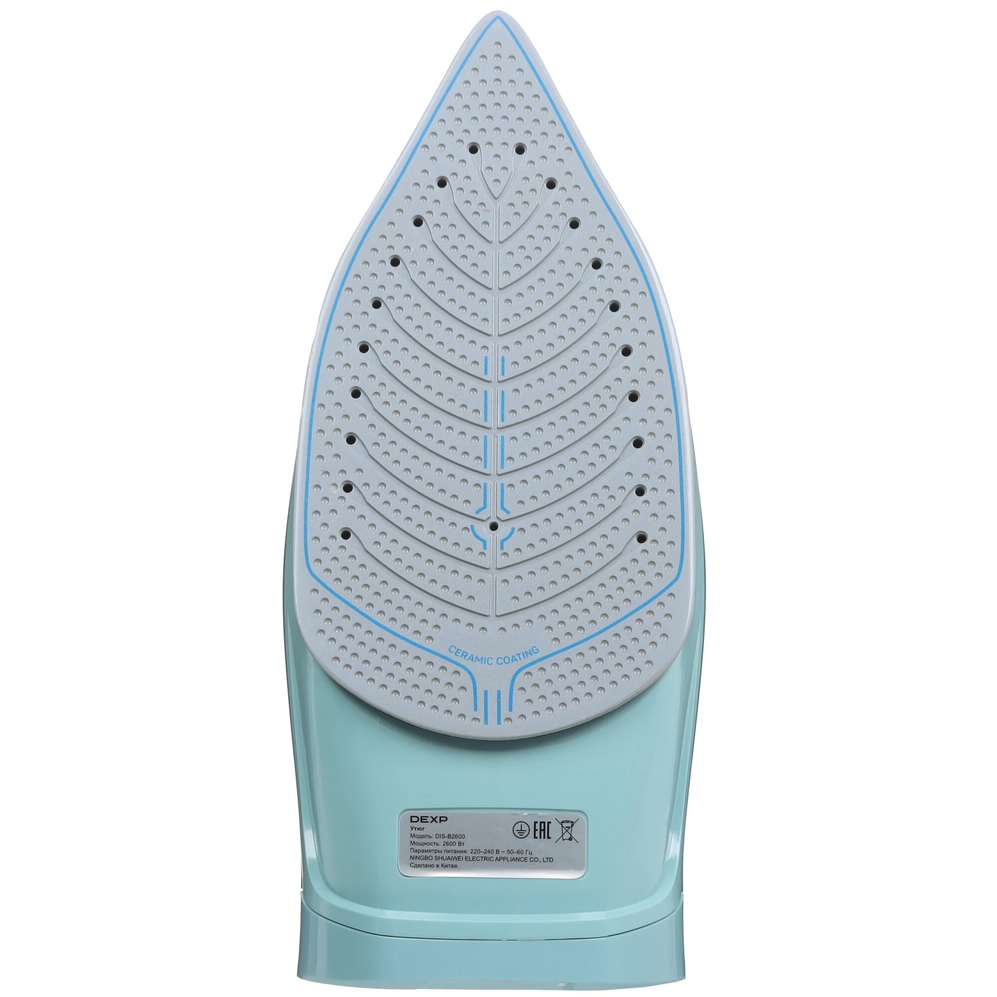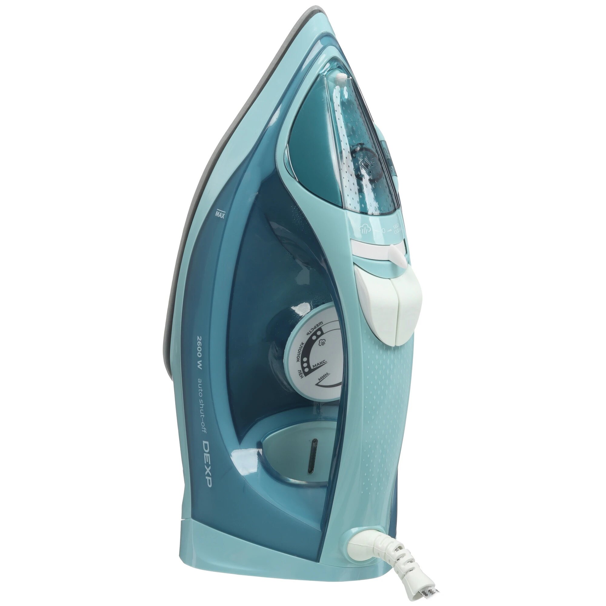 Купить Утюг DEXP DIS-B2600, голубой, 2600 Вт, Ceramic Coating, 300 мл, паровой удар, автоотключение, 1.85 м шнур с доставкой по всей России.