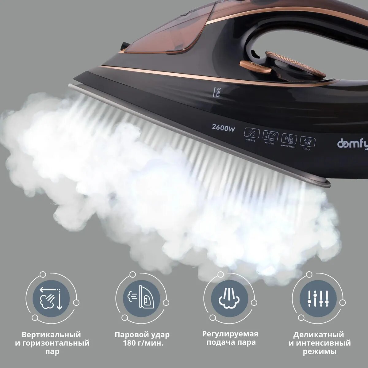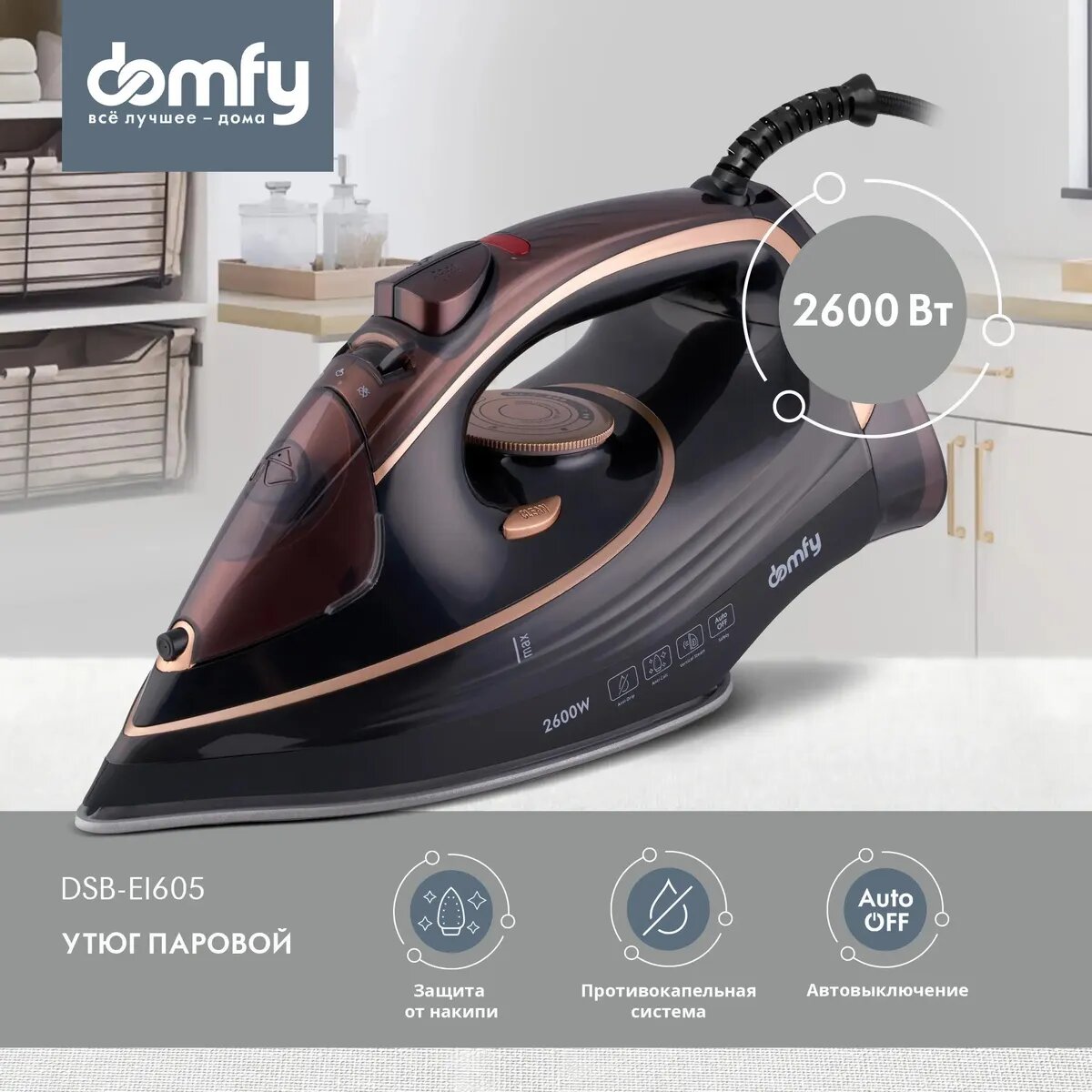 Купить Утюг DOMFY DSC-EI605, 2600Вт, черный/золотистый с доставкой по всей России. Утюг DOMFY DSC-EI605, 2600Вт, черный/золотистый: сравнение цен, характеристики, фото, актуальное наличие и цены.
