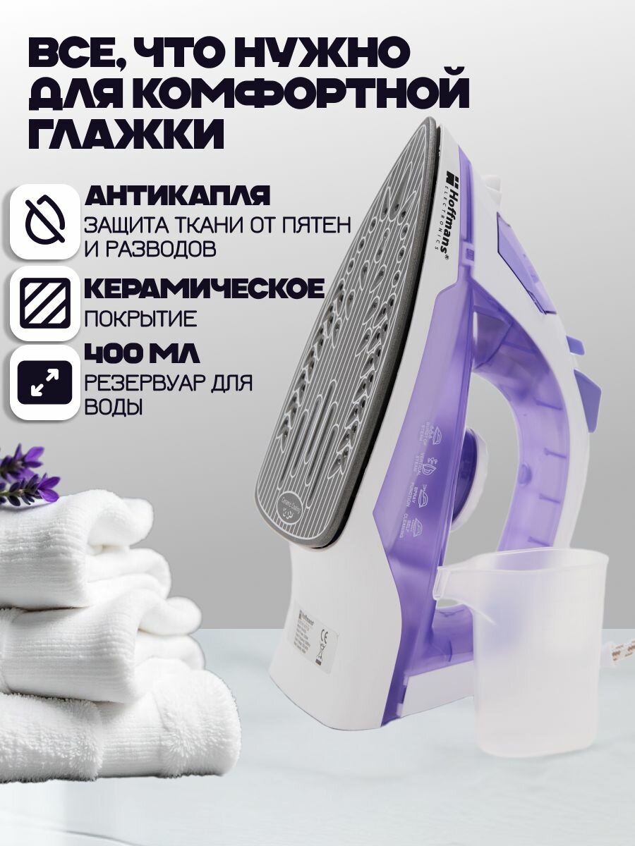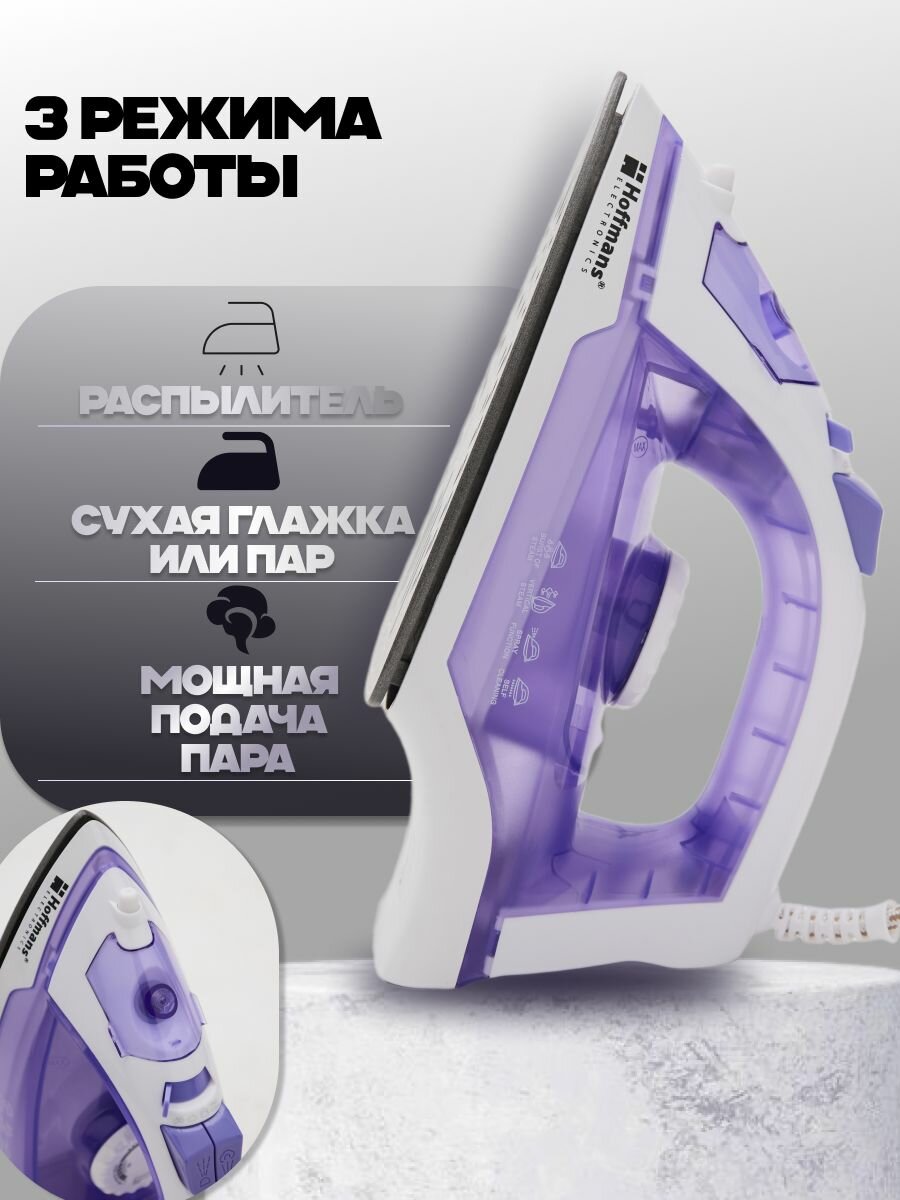 Купить Утюг Hoffmans, паровой, антипригарное покрытие, мощность 2200 Вт, фиолетовый с доставкой по всей России.