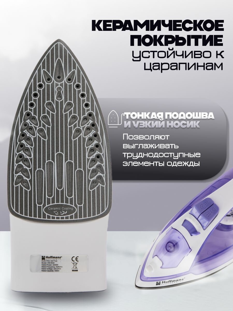 Утюг Hoffmans, паровой, антипригарное покрытие, мощность 2200 Вт, фиолетовый: сравнение цен, характеристики, фото, актуальное наличие и цены.