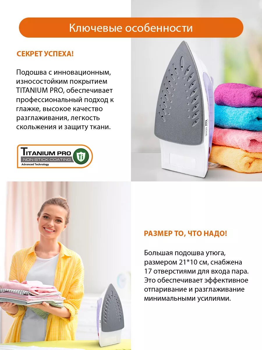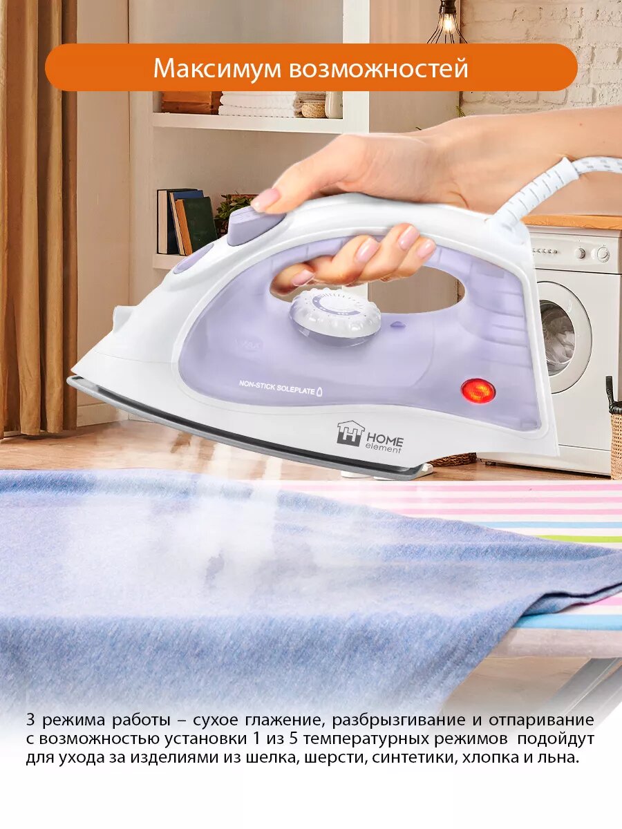 Купить Утюг HOME ELEMENT HE-IR217, 1800W, 30g/min, отпаривание и разбрызгивание с доставкой по всей России.