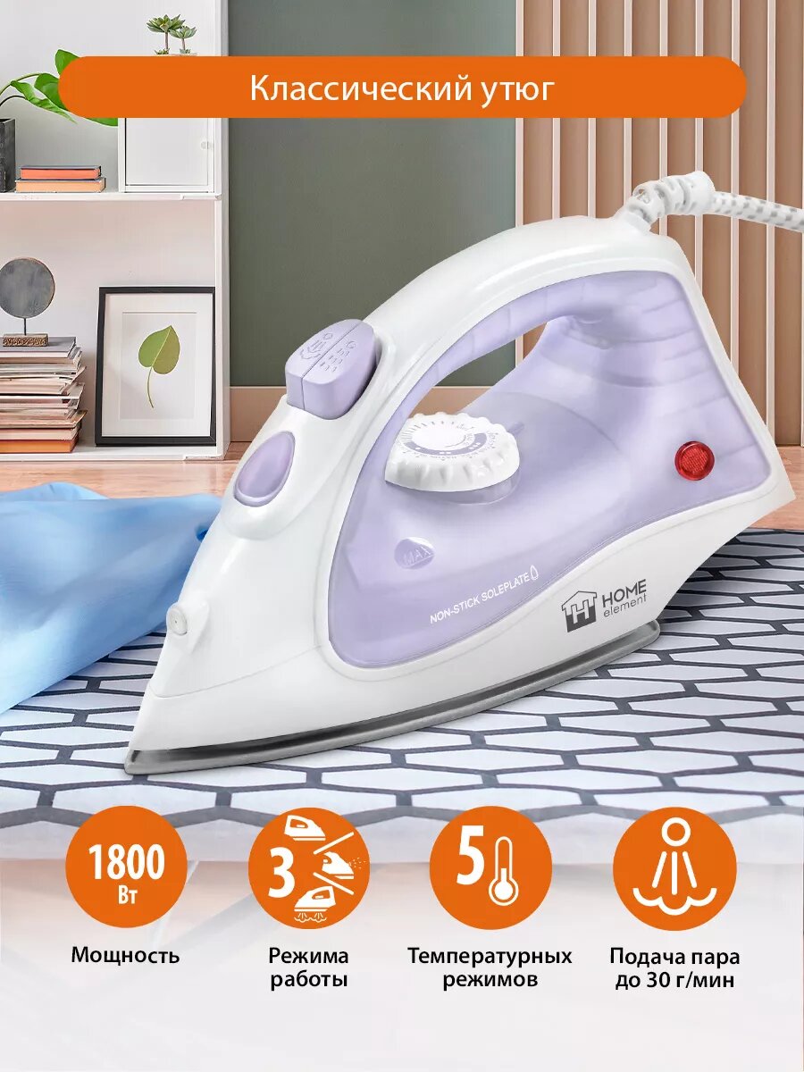 Утюг HOME ELEMENT HE-IR217, 1800W, 30g/min, отпаривание и разбрызгивание: сравнение цен, характеристики, фото, актуальное наличие и цены.
