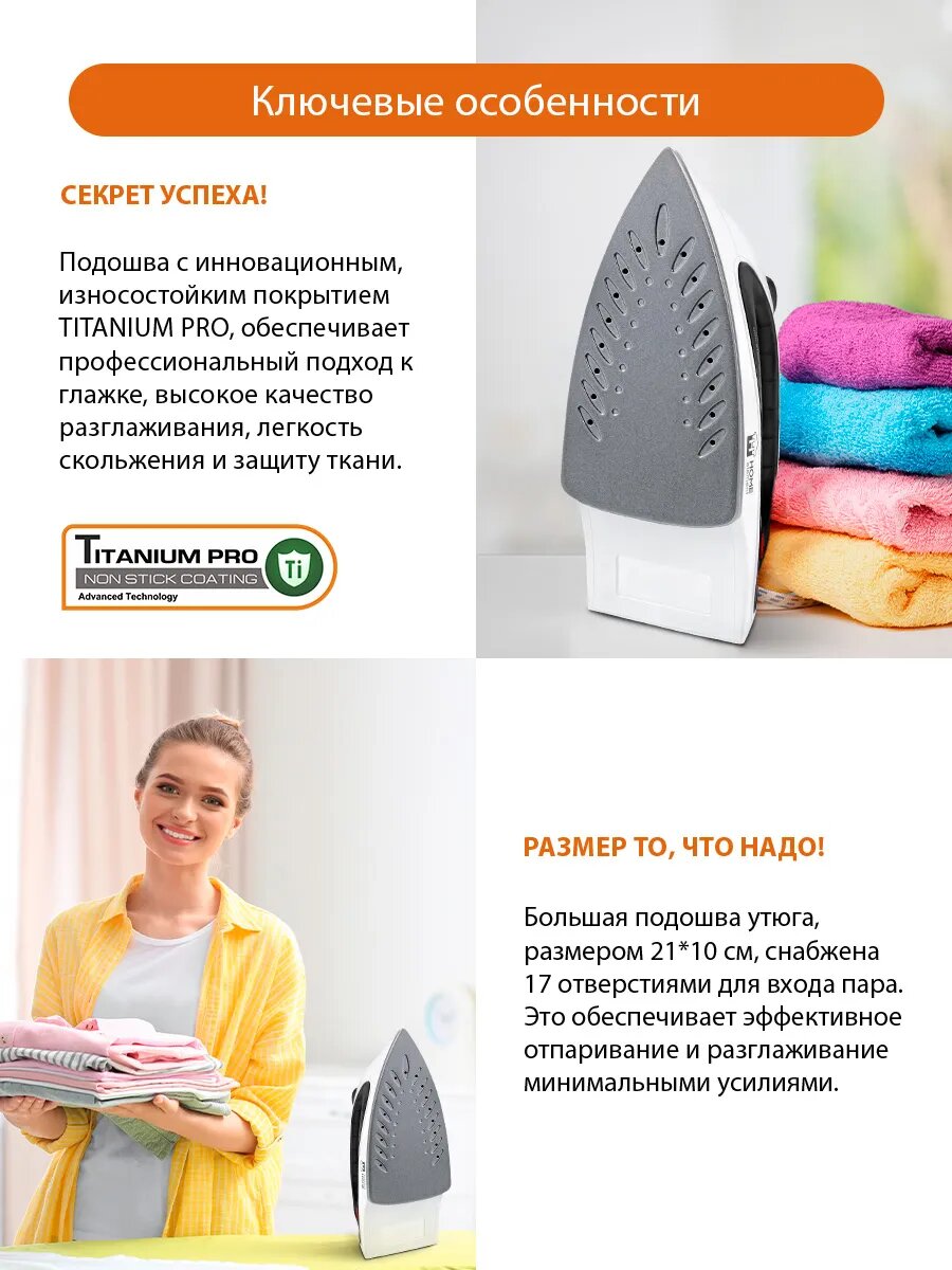 | Дополнительная информация | Функция отпаривания; Индикация готовности к работе; Индикация включения; Индикация уровня воды |