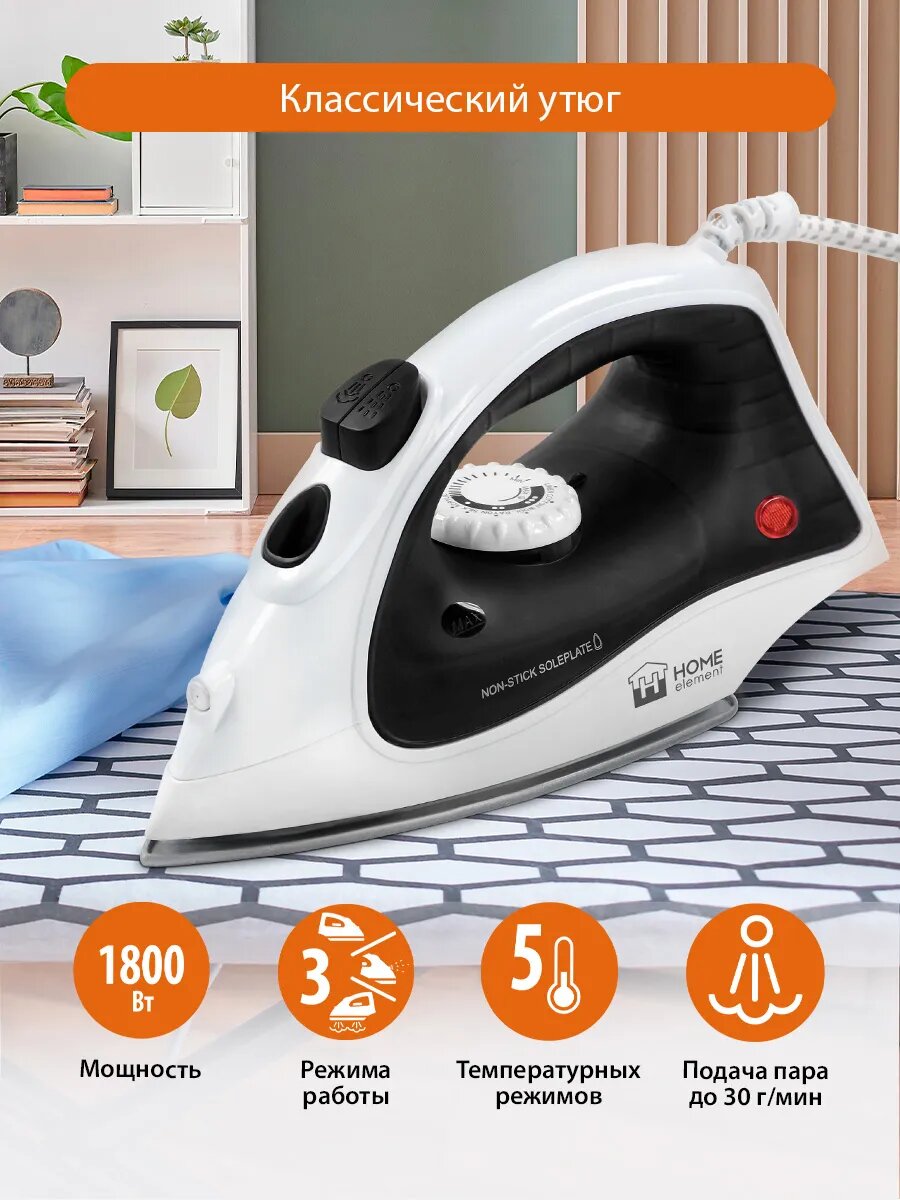 Утюг HOME ELEMENT IR217, белый мрамор, мощность 1800 Вт, тефлоновая подошва, 30 г/мин: сравнение цен, характеристики, фото, актуальное наличие и цены.