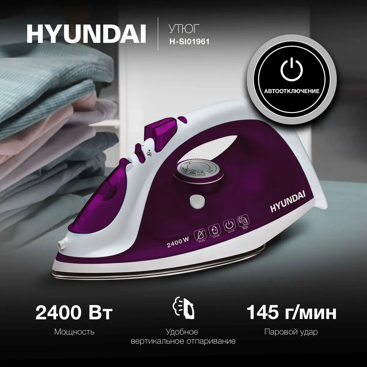 Наличие функции вертикального отпаривания способствует глажке вещей непосредственно на вешалке или плечиках. Утюг HYUNDAI H-SI01961 обладает антикапельной системой, которая предотвращает попадание лишней влаги на одежду и образование мокрых пятен. В целях обеспечения безопасности утюг оснащен системой автоотключения во время простоя.
