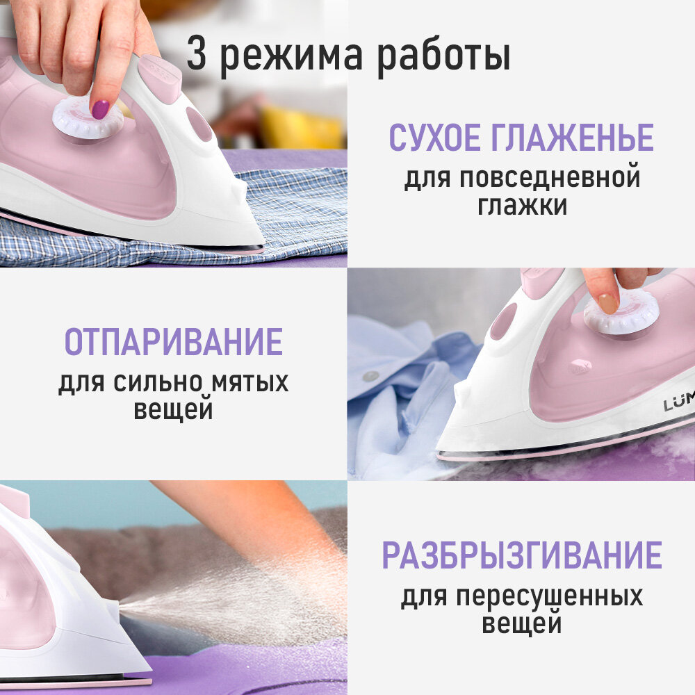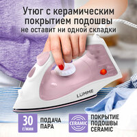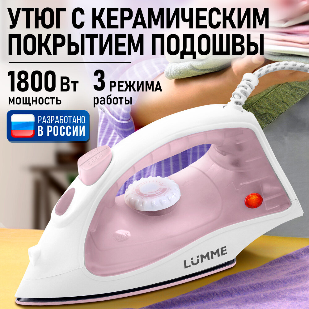 Утюг LUMME LU-IR1137A, металлокерамическое покрытие, 1,6 м шнур, 150 мл, 1800 W, розовый: сравнение цен, характеристики, фото, актуальное наличие и цены.