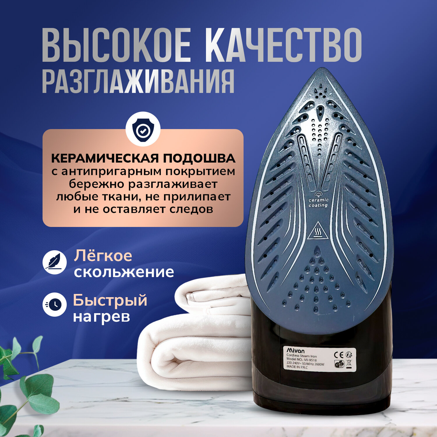 Утюг Mivan беспроводной мощный паровой для одежды с отпаривателем для глажки 2 в 1: сравнение цен, характеристики, фото, актуальное наличие и цены.