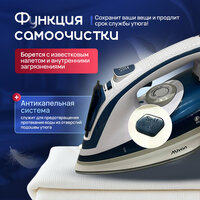 Купить Утюг Mivan мощный электрический для глажки с отпаривателем с самоочисткой синий/белый с доставкой по всей России.