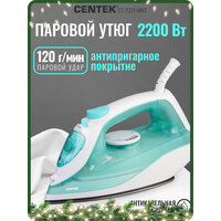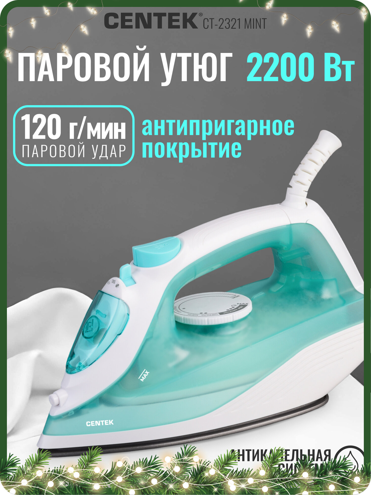 Утюг Centek CT-2321, 2000 Вт, антипригарное покрытие, 210 мл, капля-стоп, пар. удар, зеленый