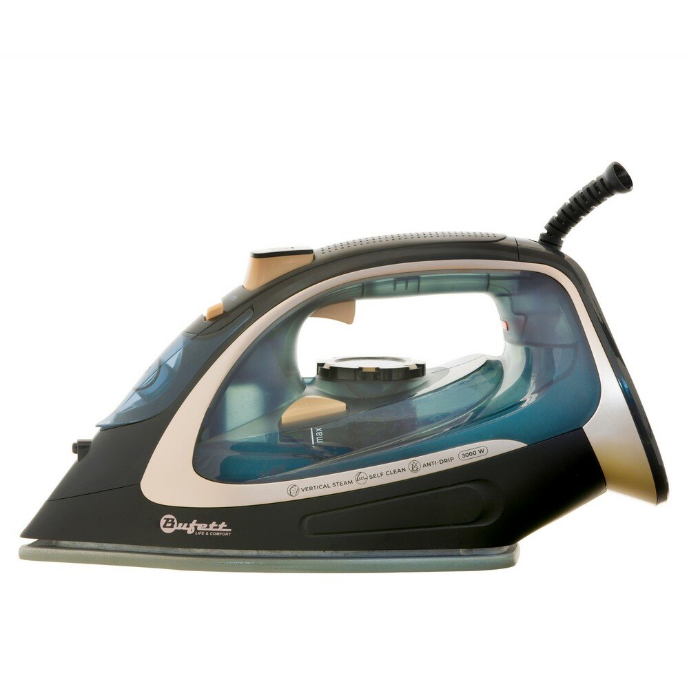 Утюг с отпаривателем Bufett 3000Вт, черно-золотой, 640462: сравнение цен, характеристики, фото, актуальное наличие и цены.