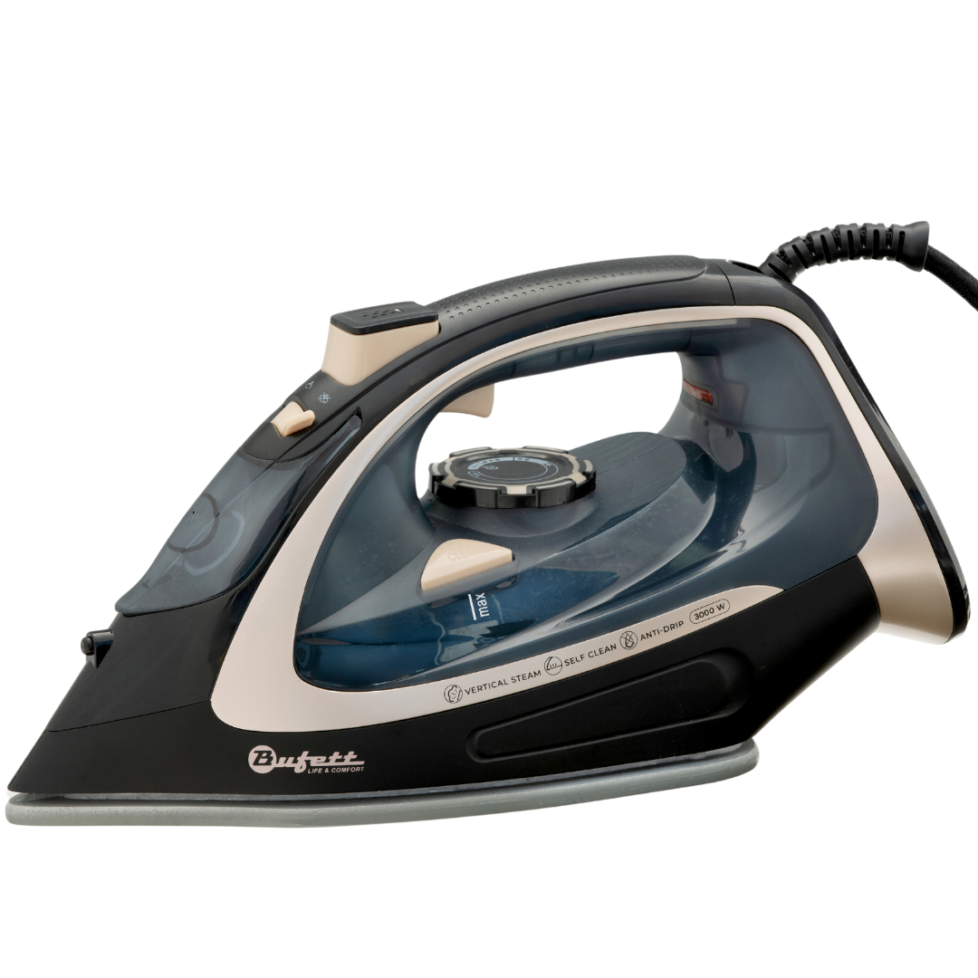 Утюг Bufett 3000 Вт, антипригарная керамическая подошва, самоочистка, паровой удар до 120г, черный