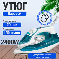 Купить Утюг паровой для глажки одежды, мощный, с антипригарным покрытием, 2400 вт, синий с доставкой по всей России.