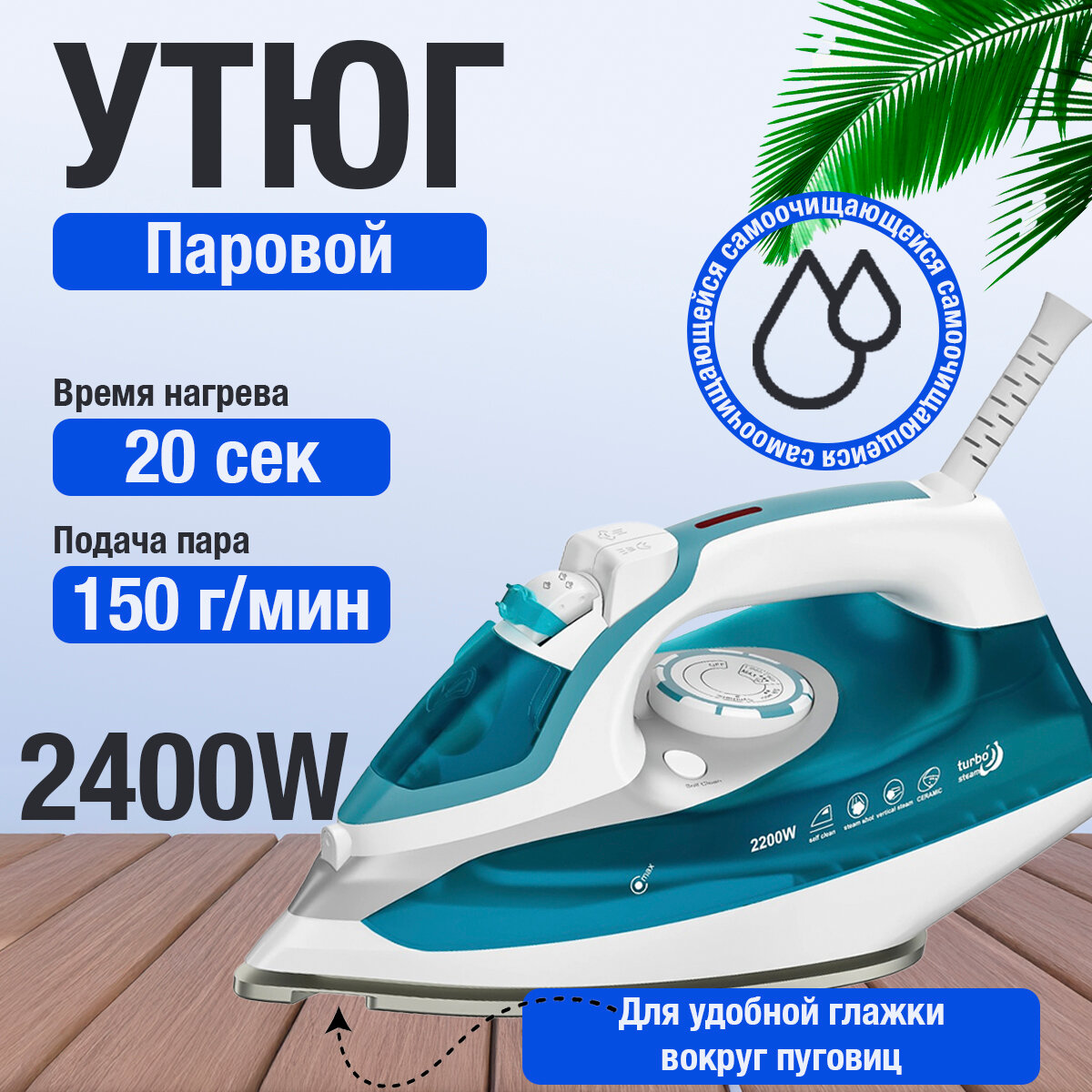 Утюг паровой для глажки одежды, мощный, с антипригарным покрытием, 2400 вт, синий: сравнение цен, характеристики, фото, актуальное наличие и цены.