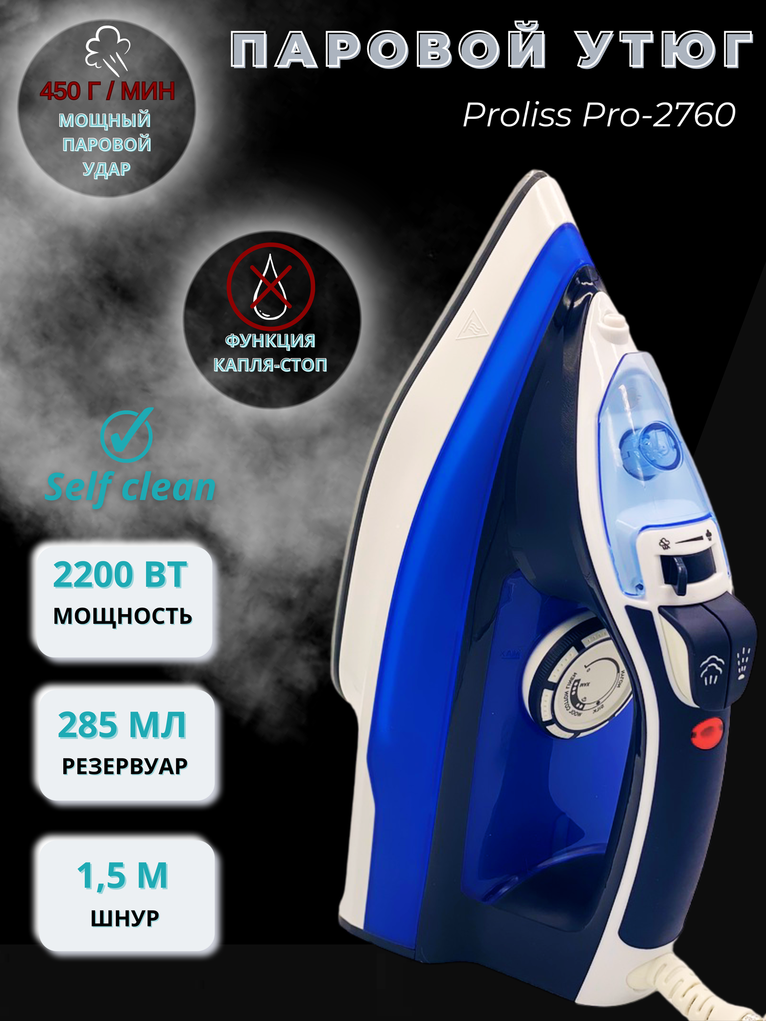Купить Утюг паровой для глажки PROLISS PRO-2760, керамическая подошва 2200 Вт с доставкой по всей России. Утюг паровой для глажки PROLISS PRO-2760, керамическая подошва 2200 Вт: сравнение цен, характеристики, фото, актуальное наличие и цены.